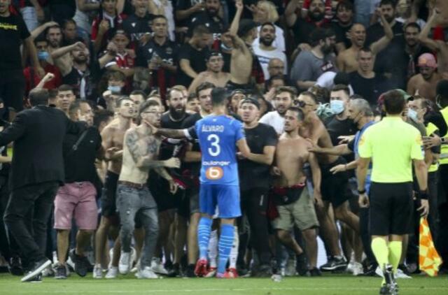 „Nice“ žaidėjai grįžo į aikštę, bet „Marseille“ futbolininkai, nukentėję ir nuo varžovų sirgalių smurto, toliau žaisti atsisakė.