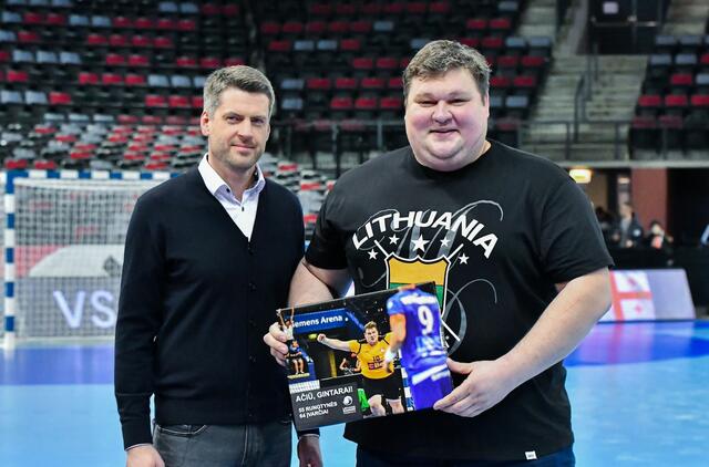 Per karjerą Lietuvos rinktinėje 55 rungtynes sužaidusiam ir 64 įvarčius pelniusiam G. Cibulskiui sekmadienį Klaipėdos „Švyturio“ arenoje buvo įteikta padėka už nuopelnus nacionalinei komandai.