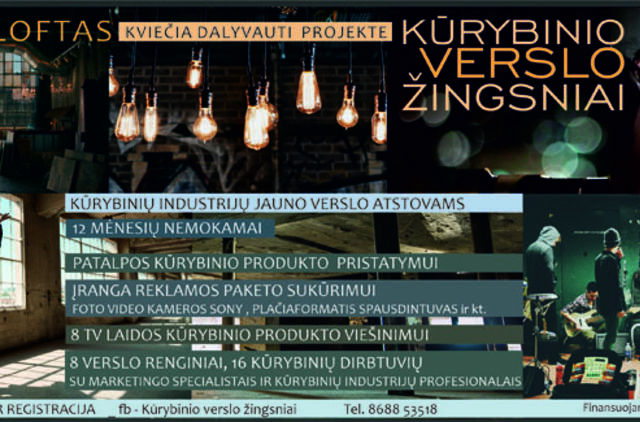 Kūrybinio verslo žingsniai. Projektas finansuojamas Europos socialinio fondo lėšomis.
