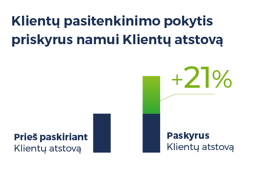 Klientų atstovų misija orientuota į kliento kreipinių ir problemų sprendimų kontrolę bei koordinavimą, tačiau einamuosius būsto priežiūros klausimus gyventojai ir toliau bus skatinami spręsti per klientų aptarnavimo centrą jiems patogiausiu būdu: elektroninėje „eBŪSTO“ platformoje, el. paštu arba telefonu. M.Genio teigimu, klientų atstovas į procesą įsijungs tuomet, jei būsto priežiūros specialistų komandai nepavyktų išspręsti gyventojo klausimo.