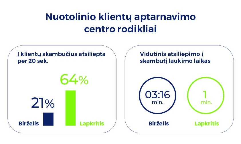 Įmonės vadovas pastebi, kad ženkliai gerėja Klientų aptarnavimo centro rodikliai. Pavyzdžiui, per pastarąjį pusmetį daugiau nei tris kartus pagerėjo atsiliepimų į skambučius laikas. Jei birželį klientams, kol bus sujungti su konsultantais, vidutiniškai tekdavo laukti 3 min. 16 sek., tai lapkritį laukimo laikas sutrumpėjo iki 1 min. Be to, į 64 proc. visų skambučių konsultantai dabar atsiliepia ne ilgiau kaip per 20 sekundžių.