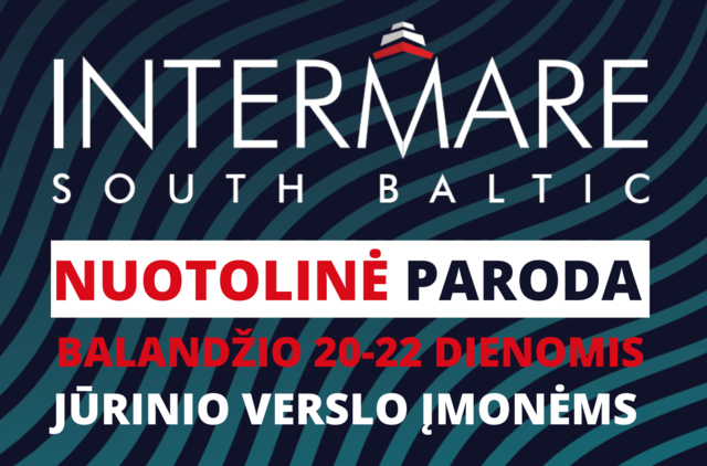 Klaipėdos prekybos, pramonės ir amatų rūmai kviečia Lietuvos jūrinio verslo įmones dalyvauti nuotolinėje „INTERMARE South Baltic“ parodoje Gdanske (Lenkija). Pagrindinės parodos temos: laivų statyba ir remontas, laivų agentavimas, laivų, jachtų ir karinio jūrų laivyno įranga, uostų ir terminalų įranga, jūrinis turizmas, jūrų saugumas, teisė ir išsilavinimas, žuvininkystė ir akvakultūra.