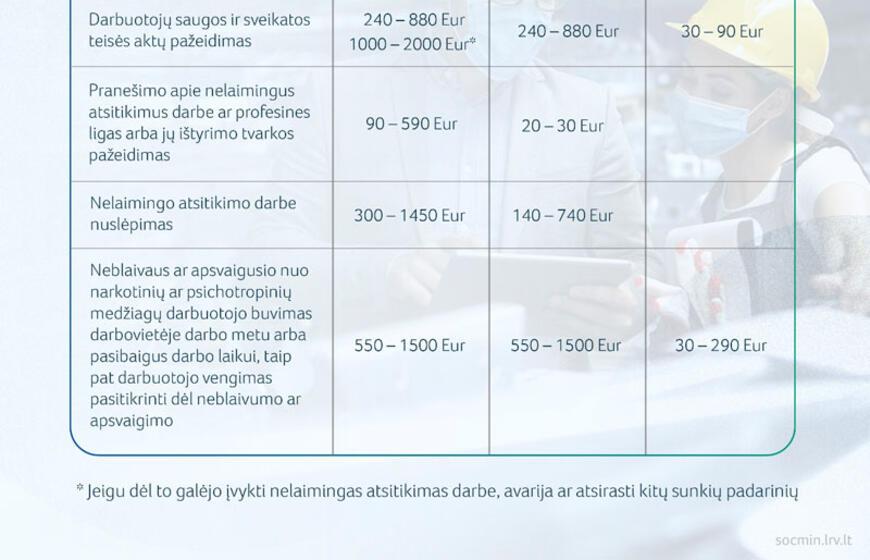 Pasekmės, jeigu nesilaikoma darbuotojų saugos ir sveikatos reikalavimų