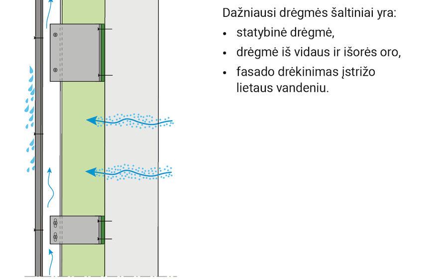 Sienos vėdinimas yra būtinas papildomos drėgmės pašalinimui iš išorinės sienos konstrukcijos. Dažniausi drėgmės šaltiniai yra statybinė drėgmė, drėgmė iš vidaus ir išorės oro (vėdinimo) bei fasado drėkinimas įstrižo lietaus vandeniu. Todėl reikia užtikrinti pakankamą sienos vėdinimą įvairiose klimato sąlygose, įtakojančiose skirtingas drėgmės apkrovas ir vėjo slėgį.