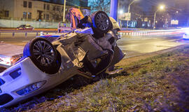 Staigiai stabdė ir suko vairą į šoną: per avariją apsivertusioje mašinoje pakibo žemyn galva