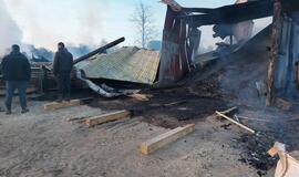 Ugnis įsiplieskė ryte: gaisras sunaikino pusę ūkinio pastato