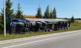 Vilkikas kelionę baigė griovyje: vairuotojas iš Baltarusijos įpūtė 2,54 prom.