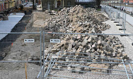 Senamiesčio grindinio akmenis panaudojo gabionui