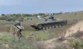 Nufilmuota, kaip rusai ant kovos mašinos iškėlė baltą vėliavą ir pasidavė ukrainiečiams