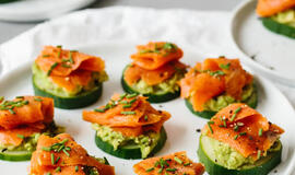 Sveikuoliškas rūkytos lašišos, avokado ir agurkų užkandis - papuoškite savo šventinį stalą