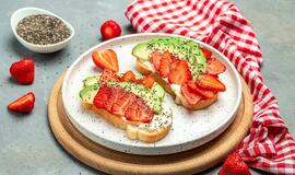 Skrebučiai su braškėmis ir buratos sūriu – gaiviam vasaros rytui